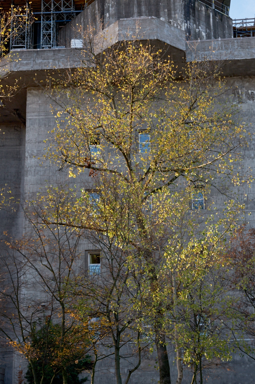 Das Pfaffenhütchen ist eine meiner liebsten Pflanzen und ich bin immer hocherfreut, wenn ich eines sehe. Dein Wald scheint wirklich viel bereitzuhalten! ich habe auch ein neues Gebiet gezeigt bekommen aber ich zeige heute meinen typischen Mittwochsort. Meistens laufe ich mittwochs durch Planten un Blomen ins Karo-Viertel um dort bei Dokuwa Kaffee oder Milchtee zu trinken und zu plaudern. Zurück laufe ich dann über das Heiligengeistfeld, dass dieses Jahr, ohne Dom, fast immer leer und zugänglich war. Dort wurde immer Sommer gelagert und Radfahren geübt und natürlich die Weite genossen. Der Gewichtheber auf dem großen Feld scheint mir direkt symbolisch für diese Zeit zu sein. Der Bunker an der Feldstrasse ist ja immer einen Blick wert und die baulichen Veränderungen schreiten voran. Dieser tage leuchtete das Laub so schön vor den dunklen Mauern.... aber uns ist ja ein Garten versprochen worden...
