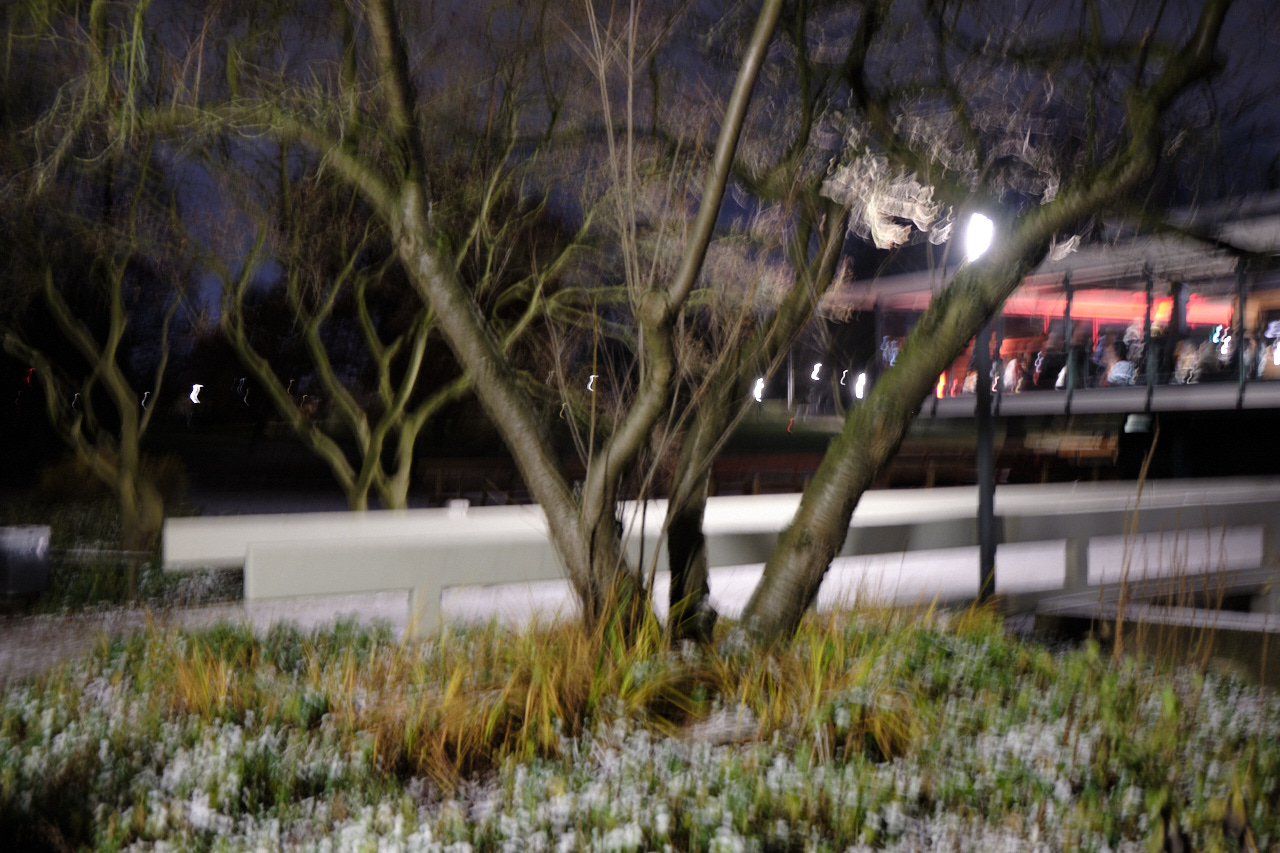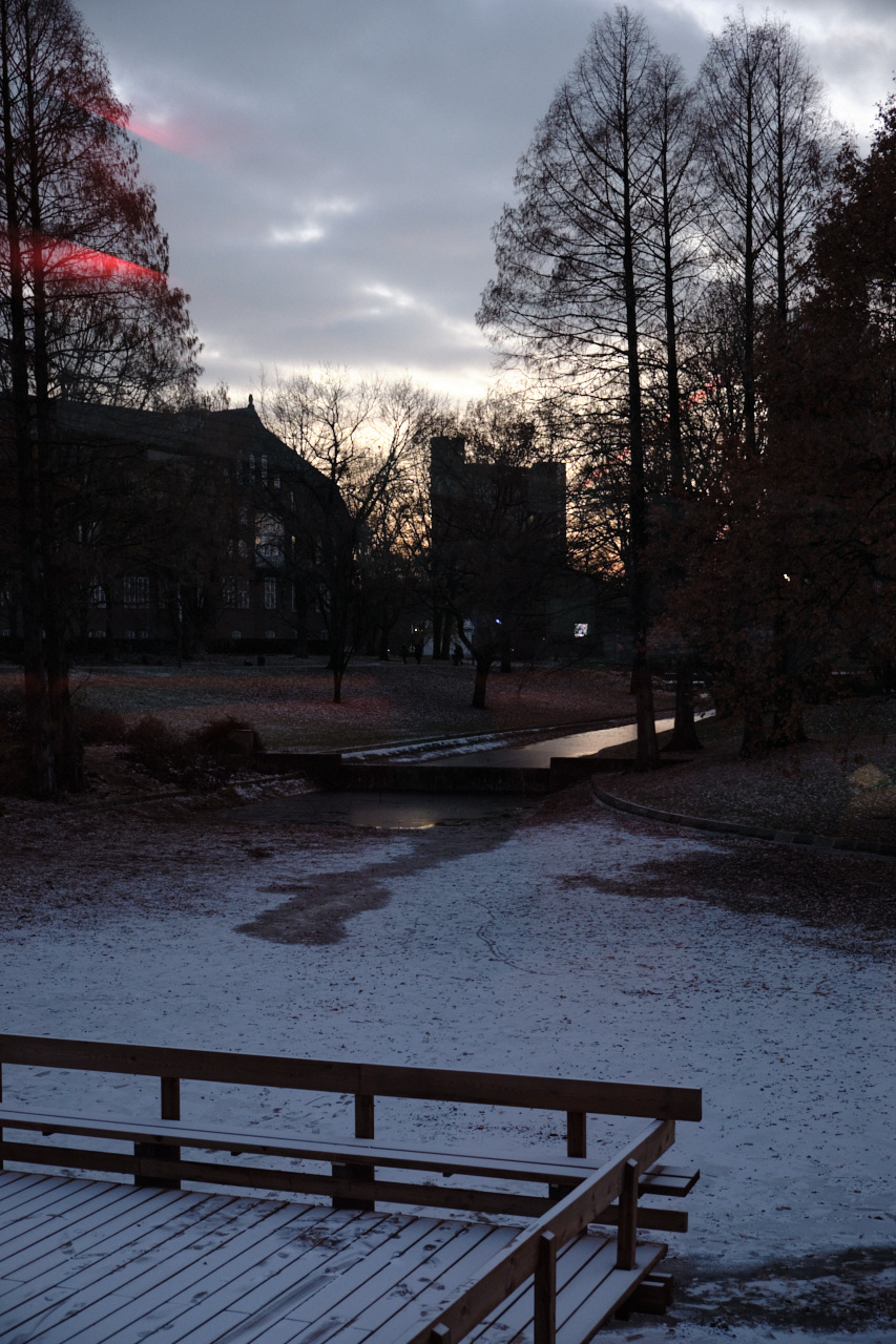 Hier ist richtig Winter. Ich trage sogar eine Strumpfhose, Mütze sowieso....Heute waren ich mit Kolleginnen auf dem Weihnachtsmarkt und wir haben alle gefroren. War trotzdem schön. Am Sonntag haben wir einen klassischen Alsterspaziergang gemacht und die ersten vereisten Stellen bewundert. Ob sie dieses Jahr zufrieren wird? Am Nachmittag hat Dan im frisch sanierten Teehaus in Planten un Blomen aufgeleget. ich war so gespannt auf das Gebäude. Vor der Sanierung bin ich nie drinnen gewesen, habe aber das Haus von aussen immer geliebt. Das war ein sehr schöner Nachmittag ich habe es sehr genossen dort Musik zu hören und in der Dämmerung, scheinbar im Park zu schweben.