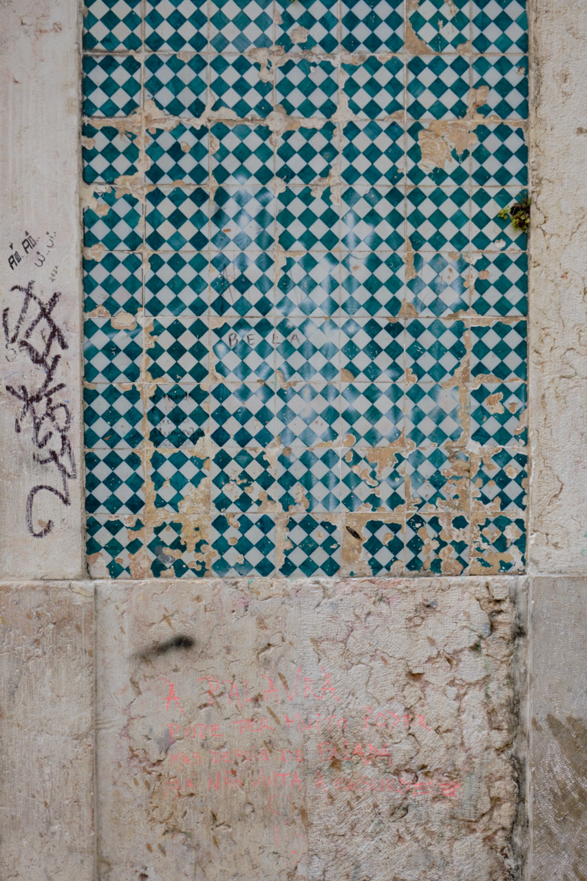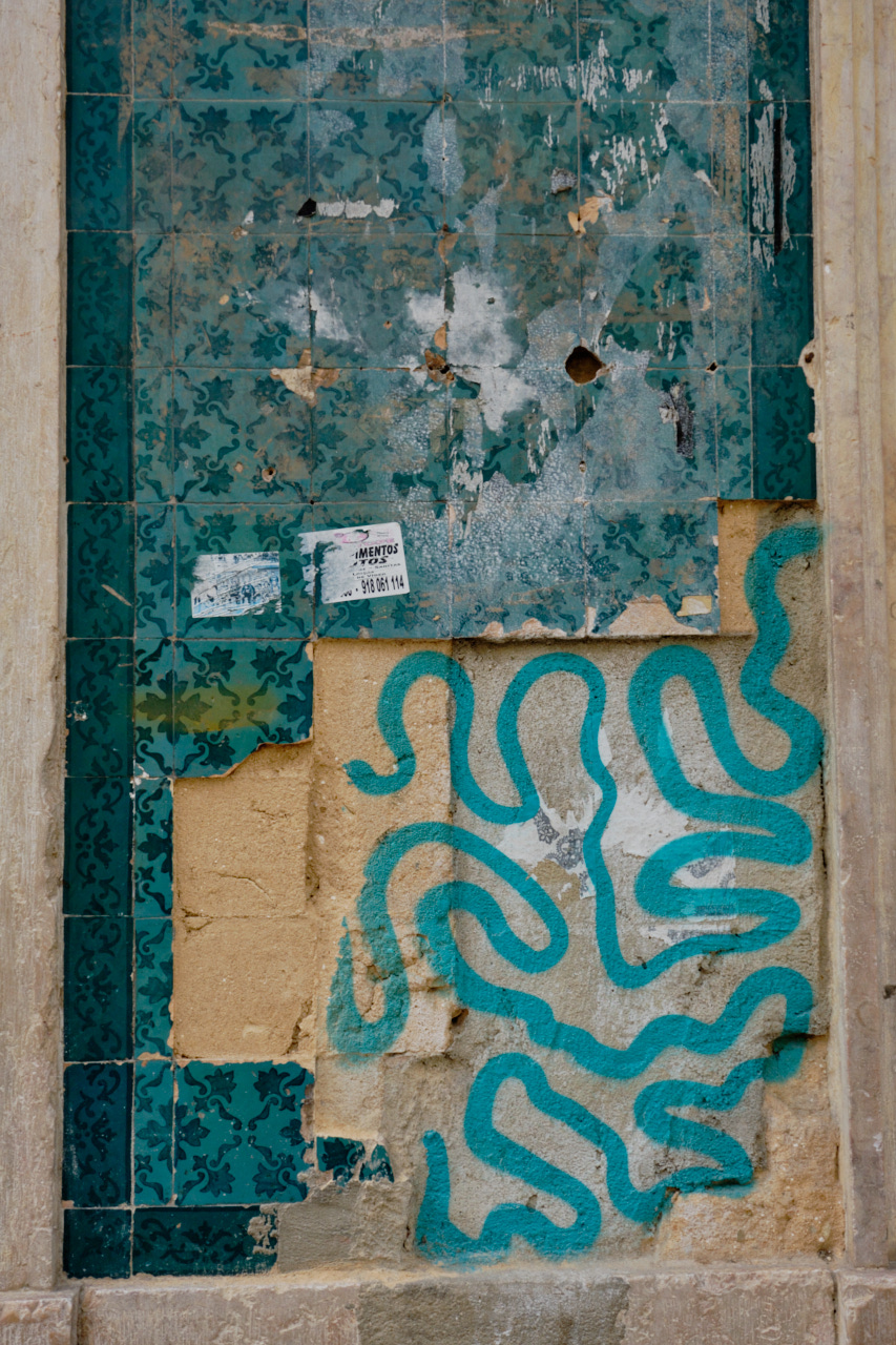 Es ist wirklich erstaunlich, wie sehr uns das Licht beeinflusst und wie sehr es uns guttut. An Lissabon hat mich vor allem das weiche, helle Licht bezaubert. Selbst nachts spürt man, dass die Stadt hell ist. Deine Bilder wirken sehr üppig und man sieht sehr deutlich, wie groß die Sehnsucht nach dem Süden ist. Das ist faszinierend zu sehen, wie Gedanken die Bilder mitgestalten. Für heute sind meine Bilder etwas konkreter. Ich habe so viele Muster fotografiert, meistens Hauswände mit Kacheln, dazu kommen Aufkleber, Kritzeleien, Verkabelungen u.Ä.. Ich überlege Zeichnungen dazu anzufertigen. Muster interessieren mich eigentlich immer...