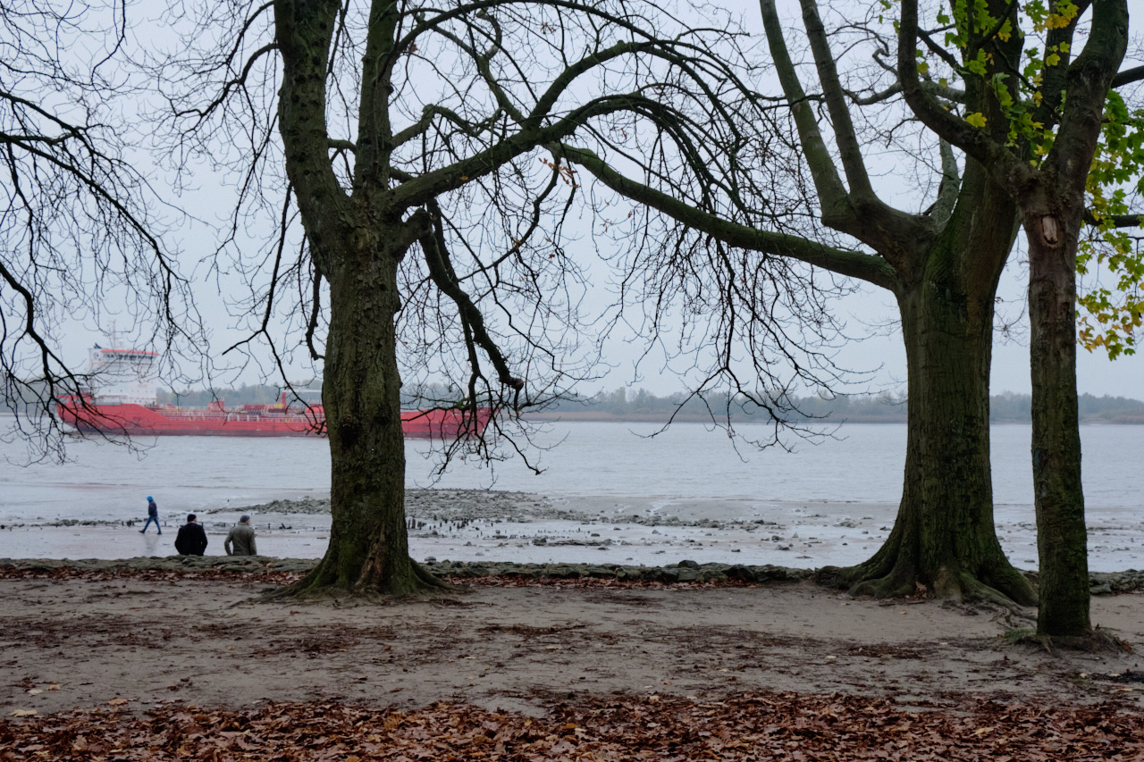 Ich bin verzaubert von Deinem Schneebild und sehne mich danach meine Umgebung verschneit zu sehen. Ich sehne mich nach der Stille, dem Weiß und der Freude, wenn Menschen, beladen mit Schlitten durch die Straßen ziehen. Hier in Hamburg ist allerdings richtig November. Immerhin leuchten hier und da noch die Blätter in herbstlichen Farben. Am Sonntag hat es uns auch ans Wasser gezogen, an die Dove Elbe. Das ist dort wirklich eine andere Welt. Man kann Reiher, Haubentaucher, Schwäne und Kormorane beobachten. Ich finde, dass unsere Wasserbilder gut zusammen passen. Wenn ich in Hamburg durch die Strassen laufe, freue ich mich immer auf den Mops August zu treffen. Oft geht er mit sich alleine, so wie ich auch.