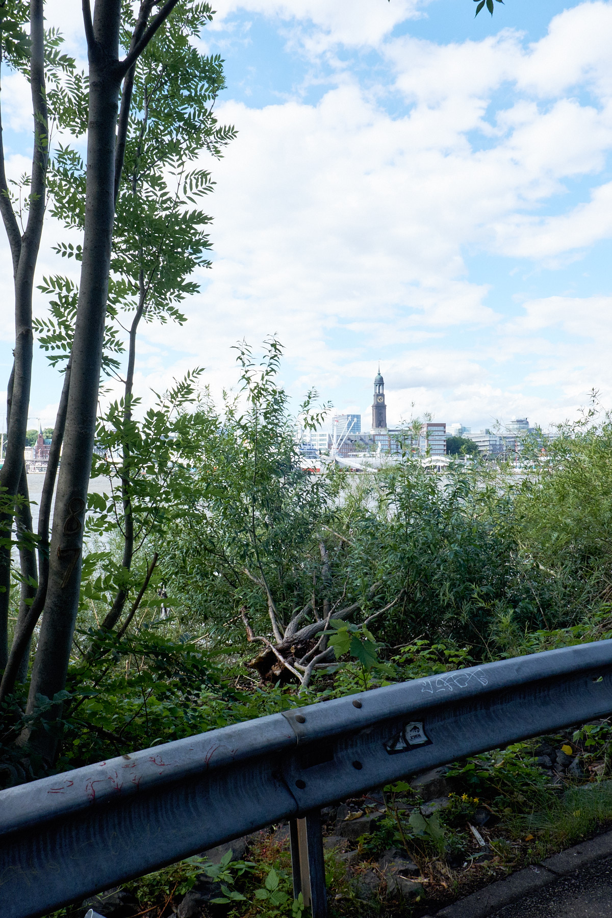 Heute gibt es schon wieder einen Ausblick. Dieses Mal von der anderen Elbseite auf die Stadt, auf das Viertel wo ich wohne, bzw Deinen alten Wohnort. Es ist immer interessant wie anders Hamburg ist, wenn man die Elbe überquert und das Zentrum ganz weit weg erscheint. Auch scheint das Representative plötzlich weniger relevant zu sein. Es gibt Kleingewerbe, Wildnis, Raum und die Betriebsamkeit ist ganz anders. Dein Blick auf Hamburg hat sich bestimmt auch schon verändert. Es ist ja jetzt eine Art von Rückblick auf eine andere Zeit, ein anderes Leben.