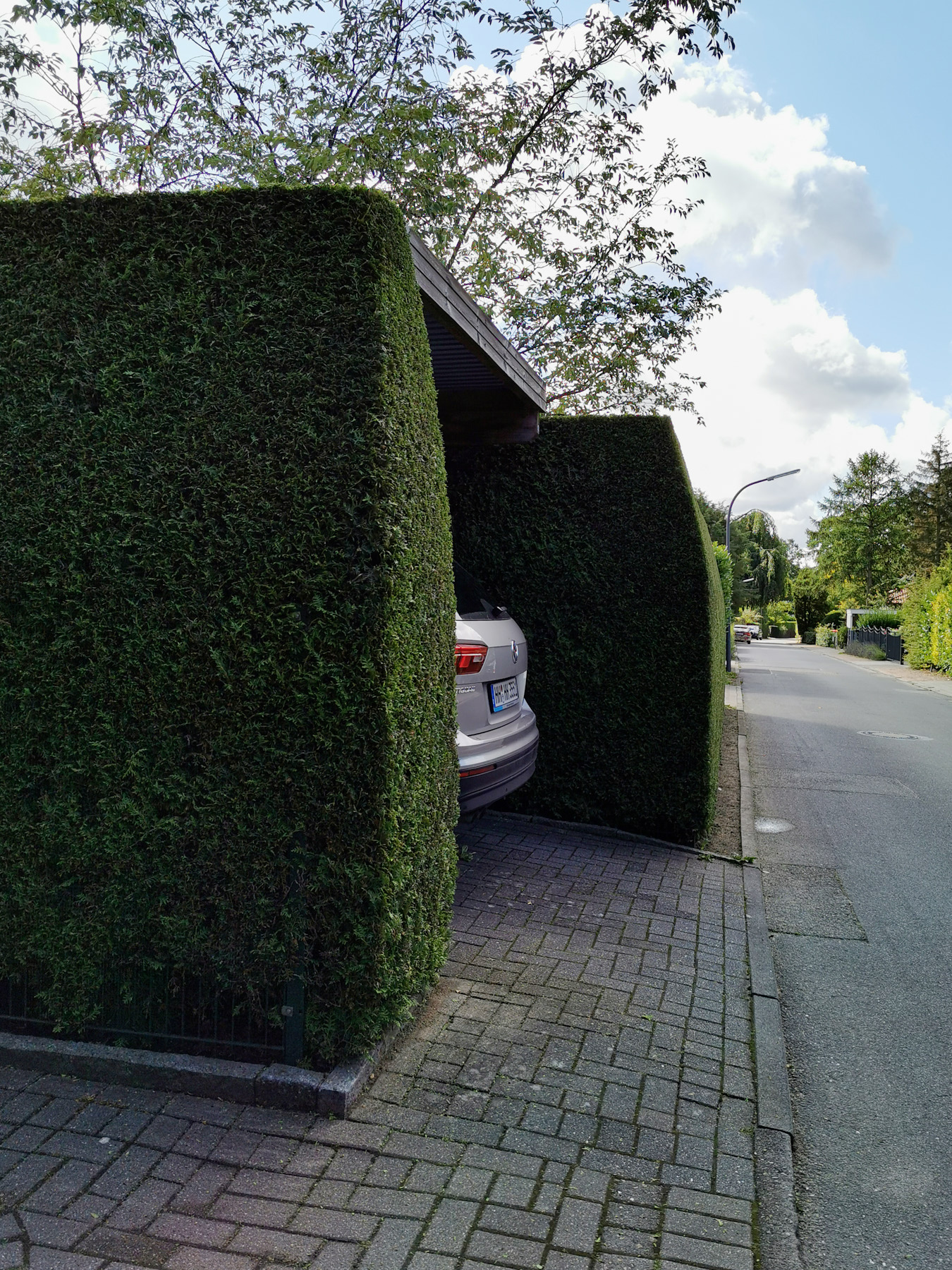 Montag Abend wollte ich schauen ob an der Seite eines Fussballfeldes ein Pfad durch geht, erst habe ich nur ein Eingangstor zu einem Garten gefunden und dann realisiert, dass unser Garten direkt daneben liegt. So bin ich durch ein Loch in der Hecke nach Hause gekommen.