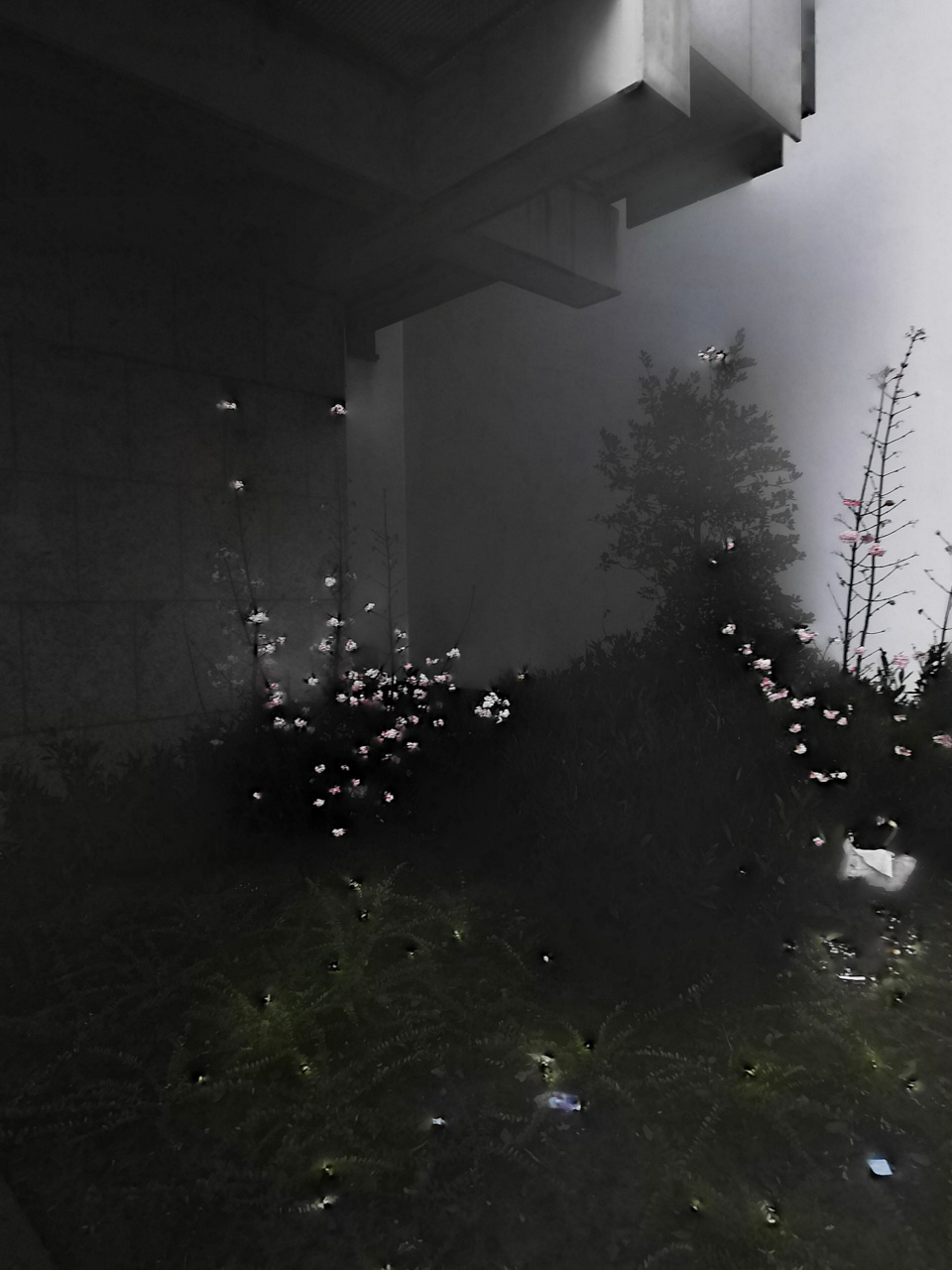 Wie schön du die merkwürdige Ecke beim Spielplatz eingefangen hast, der blühende Baum und das weiche Licht verändern den Raum doch sehr.