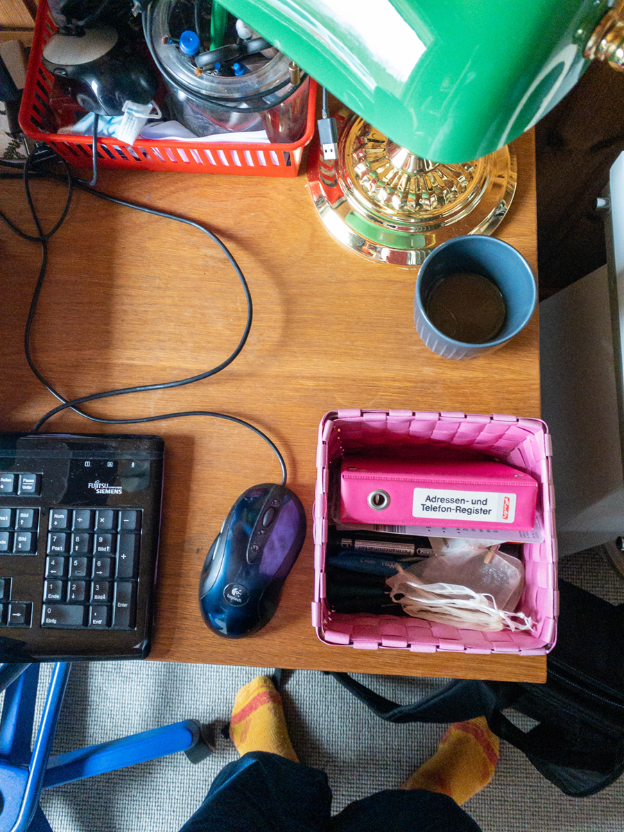 Da kann ich hier das Gegenteil anbieten. Ich bin zu meinen Eltern gefahren um ein paar Stunden zu arbeiten und sitze jetzt im Ferienhaus im ‘Büro’. Hier ist Alles voll und durcheinander. Das Zimmer war mal ein Kinderschlafzimmer, dann kam der Schreibtisch hinzu und aktuell werden noch Möbel und Allerlei eingelagert bis meine Eltern in ihr neues Haus ziehen.