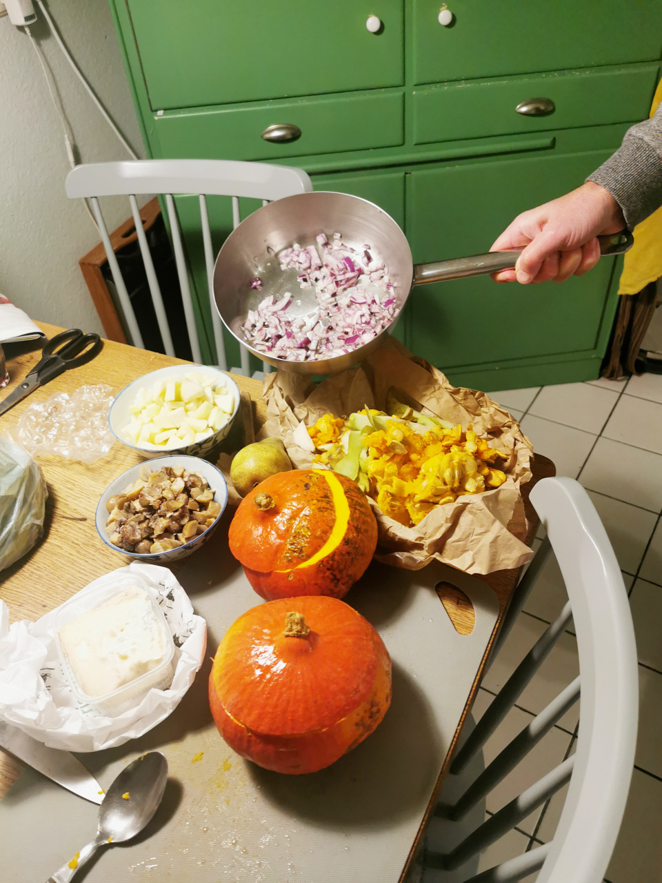 Heute ist mein letzter freier Tag vor Weihnachten und es gibt noch viele Kleinigkeiten zu erledigen. Ich bin ganz schön erledigt. Aber wir hatten eine sehr nette Weihnachtsfeier vom Laden und ein sehr nettes Willkommen-Geburtstagsfest mit Toni. Ausserdem haben wir mit der Familie Kekse gebacken und mit Fabian haben wir die schönen kleinen Kürbisse gefüllt und verspeist. Das Winterwetter hat sich zu Gunsten des typisch dunkel-schmuddeligen Weihnachtswetters verabschiedet. Vielleicht haben wir es zum Jahreswechsel zurück. Die Kunst kommt derzeit zu kurz, ich bin mit Basteln, Einwickeln und Listenschreiben beschäftigt.