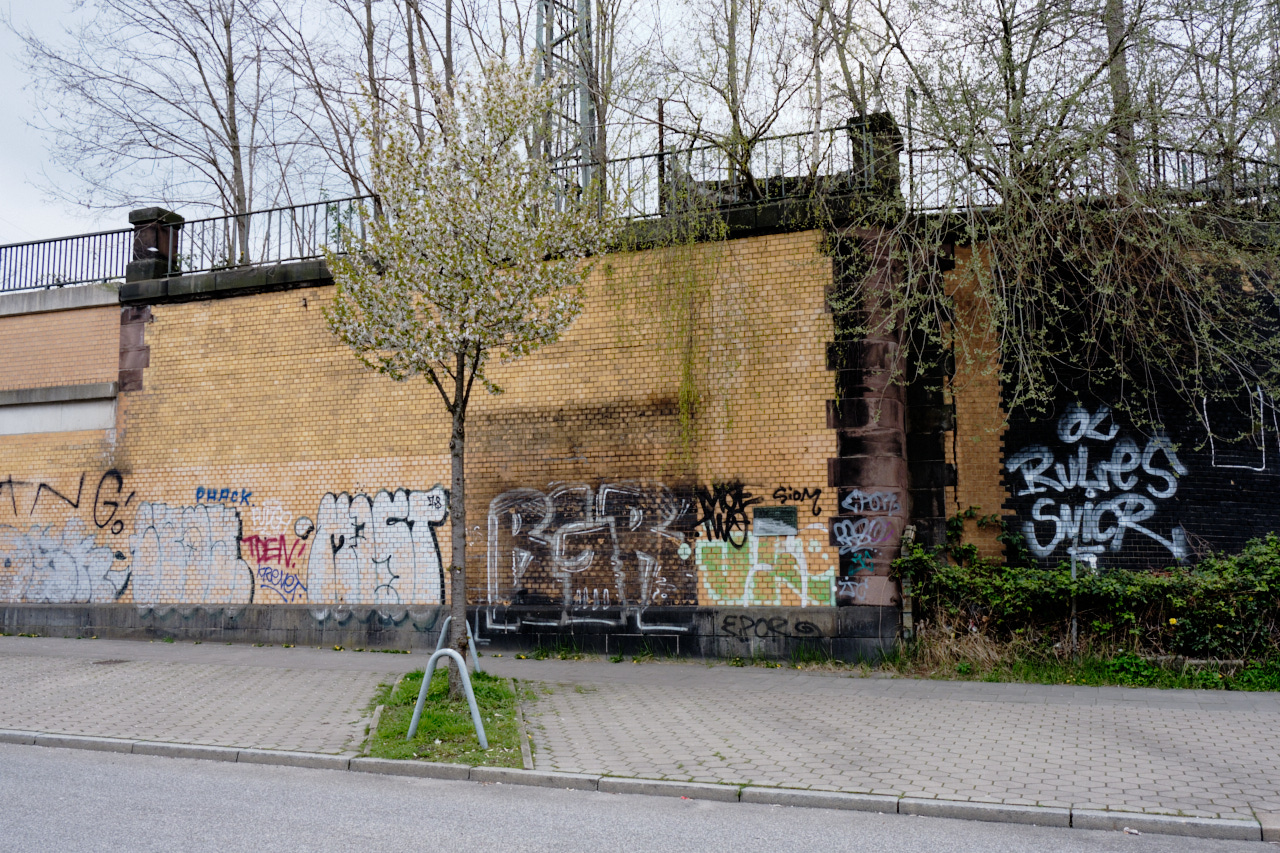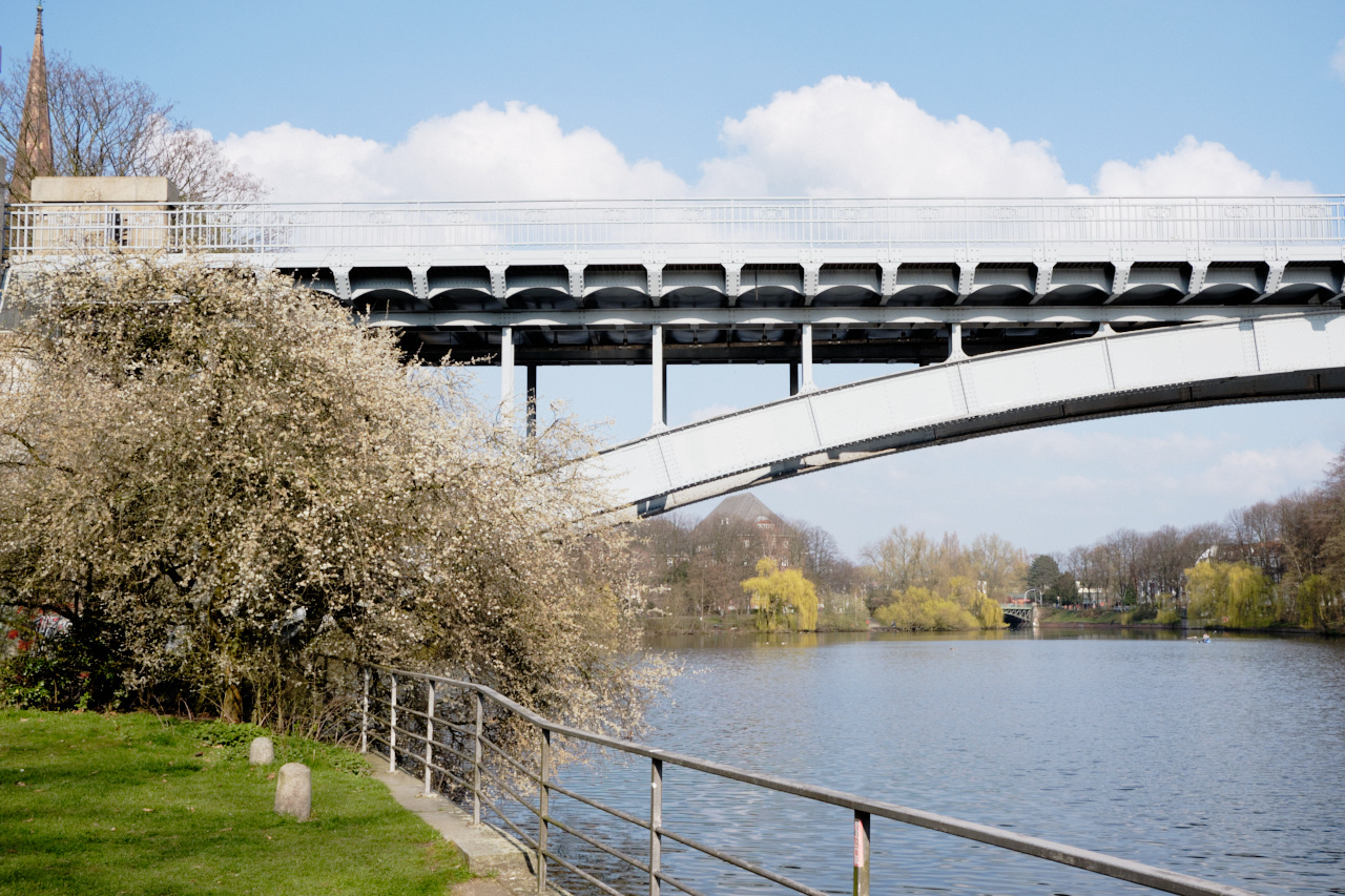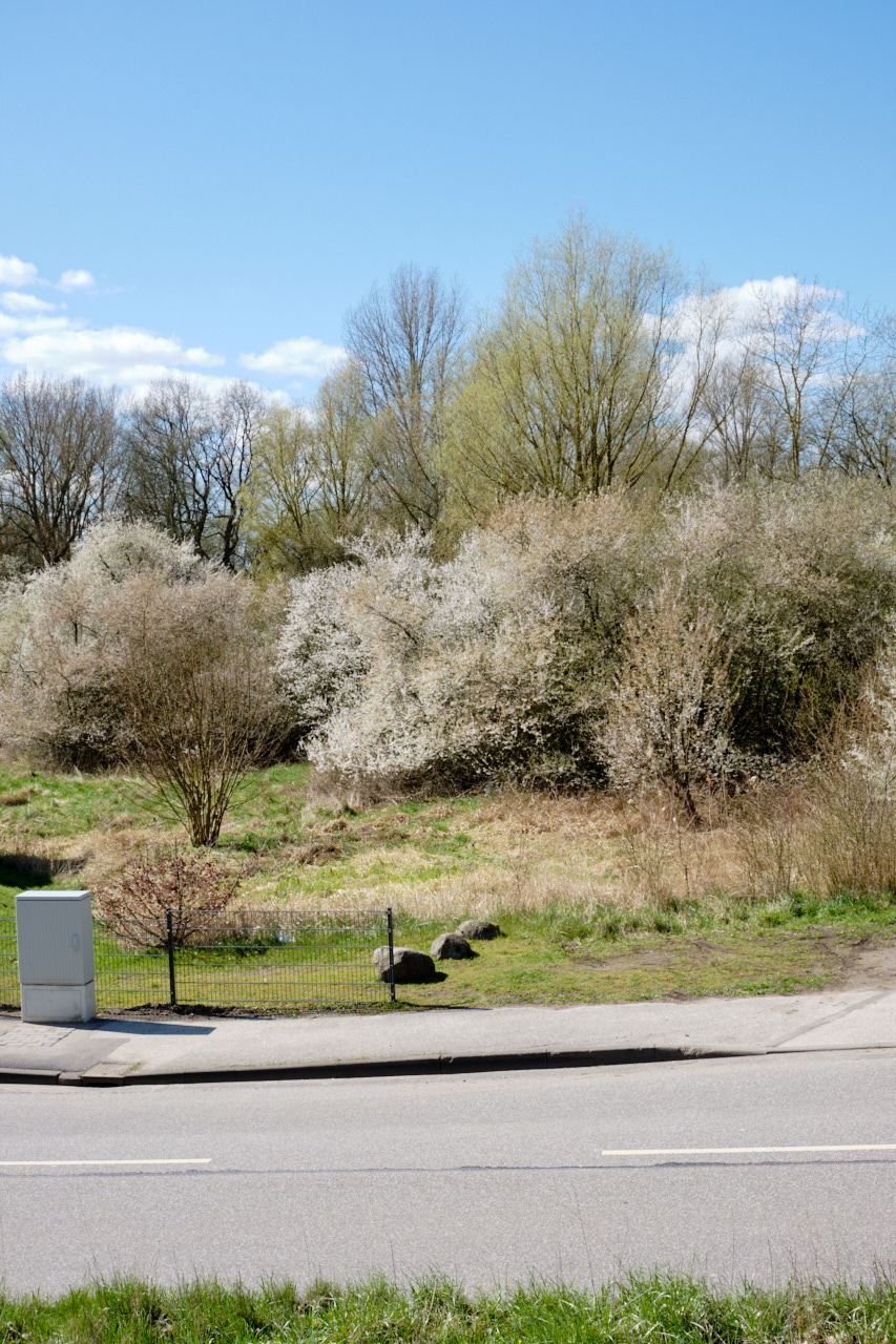 Dieses ist meine liebste Zeit zum Fotografieren. Abgesehen davon, dass meine Augen, wegen des Heuschnupfens furchtbar tränen. Am letzten Sonntag haben wir eine sehr große Runde gemacht. Wir starteten in St. pauli, weil ich unbedingt den Baum hinter dieser ranzigen Mauer fotografieren wollte. Hinter die Mauer mochte ich nicht, weil sich dort jemand etwas Privatsphäre gefunden hatte. Danach sind wir in Altenweder gelandet, wo ja, wegen der Hafenerweiterung, nur noch die Kirche und viel Grün existiert. Dort trafen wir auf einen eifrigen Ehrenamtler, der uns hinein bat. Ich wollte dort schon lange hin und bin sehr ergriffen von dieser Art Insel. danach sind wir durch Moorburg gewandert. sehr interessant, diese Häuser am Deich. Hinter dem deich ist ein extra Grunstück, was die Interessen der menschen wiederspiegelt. Viele junge Familien haben sich dort ein Häuschen gesichert, ganz anders als die übliche 'Vorortidylle'. Es scheint dort mehr Freiheit möglich zu sein. Ich musste da gleich an Euch denken...