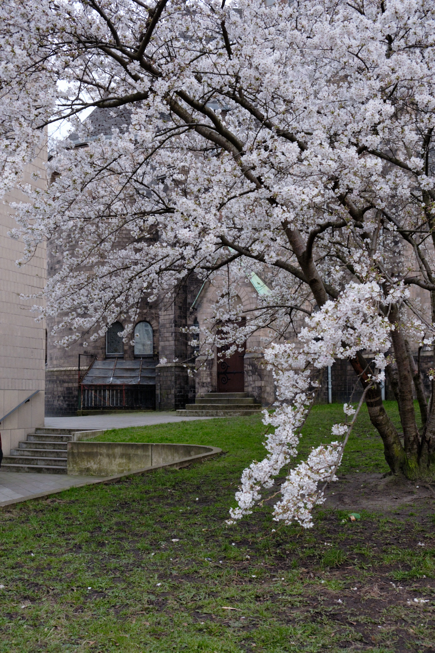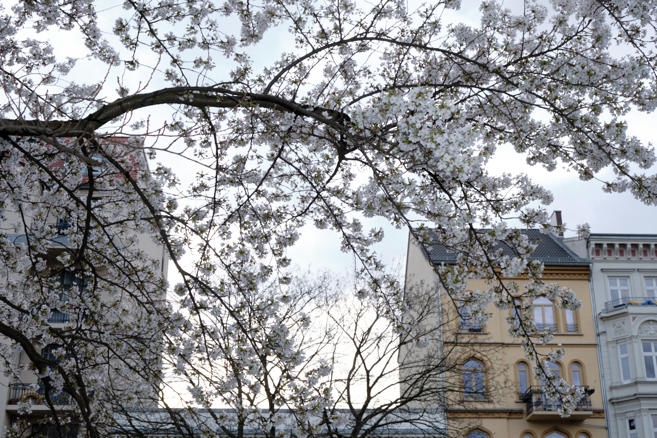 Hier ist jetzt die Zeit der Kirschblüte. Zeitgleich ist Fabian in Japan und da ist ungleich mehr davon und das allgemeine Innehalten von ganz anderer intensität.. Deshalb war ich froh, als ich gestern Abend im Karoviertel aus war dort eine prächtige japanische Kirsche zu wissen. eigentlich müsste ich heute den ganzen Tag umherstrolchen, aber es ist dunkel-kalt und ich müde vom Heuschnupfen. Aber noch ist der tag nicht vorbei und vielleicht packt mich noch die Energie. Gestern Abend bin ich auch noch allein über den Dom gelaufen, erstaunliche viel zu Essen gibt es und natürlich diese riesigen Bären, am meisten los war bizarrer Weise bei der Dosenwerf-Bude und bei den Churros. Während ich derzeit etwas ziel- und haltlos bin ist Deine Situation so ganz anders scheint mir. Das ist schön und auch spannend. Ich hoffe wir sehen uns bald.