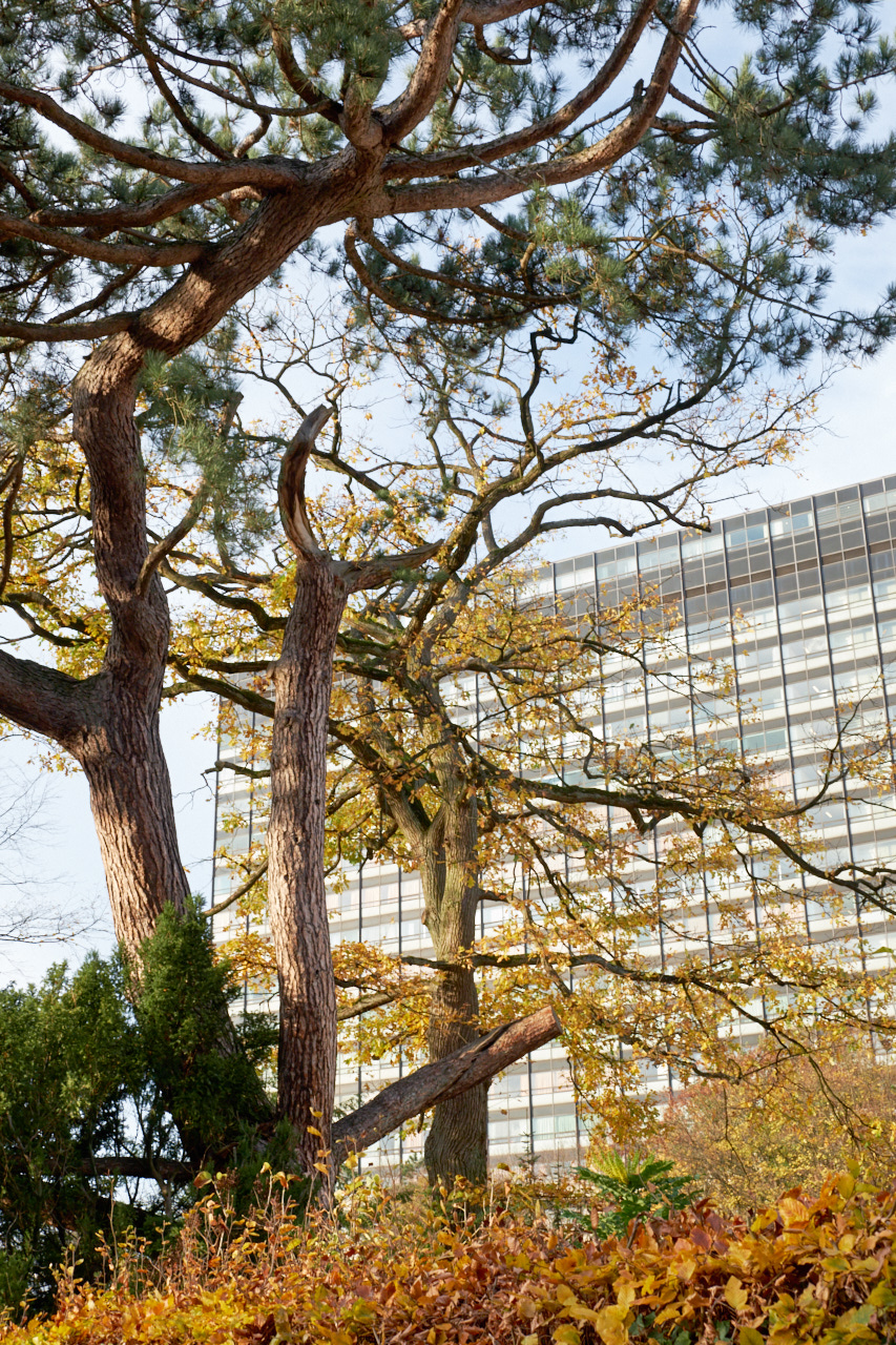 Wir hatten leztztes Wochenende noch zwei warme goldene Tage. Ich bin viel spazierengegangen und habe viel fotografiert. Diese Gegend habe ich bei den Lockdown-Spaziergängen im Frühjahr entdeckt und ich wollte unbedingt sehen wie es dort im Herbst aussieht. Die große Kiefer vor dem hohen Krankenhausgebäude und der sehr südlich wirkenden weißen Villa nebenan ist einer meiner Lieblingsbäume. Sie erinnert mich an Südfrankreich und der Anblick tut gut in diesen Zeiten der Begrenzungen. Aber wir konnten sogar im Garten mit der Familie Mittagessen, das hätten wir ohne die 'neuen Regeln' wohl nicht gemacht.