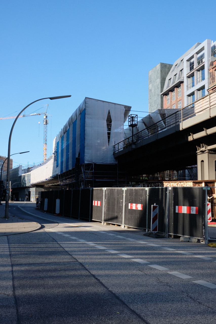 Das war eine sehr merkwürdige Woche bei mir, die eigentlich ganz der Gesundheitsvorsorge gewidmet war. Zwischen Vor- und Nachbereitung der beiden Termine hat sich glücklicher Weise dieses Gelände aufgetan. Wie so oft ist der Weg das Ziel. Auf dem Weg zum Volkspark sind wir durch Altona gegondelt, durch mir unbekannte Strassen. Hier sind neben der Baustelle für ein großes Wohnungsbauprojekt, werden hoffentlich die diversen Werkstätten erhalten bleiben.