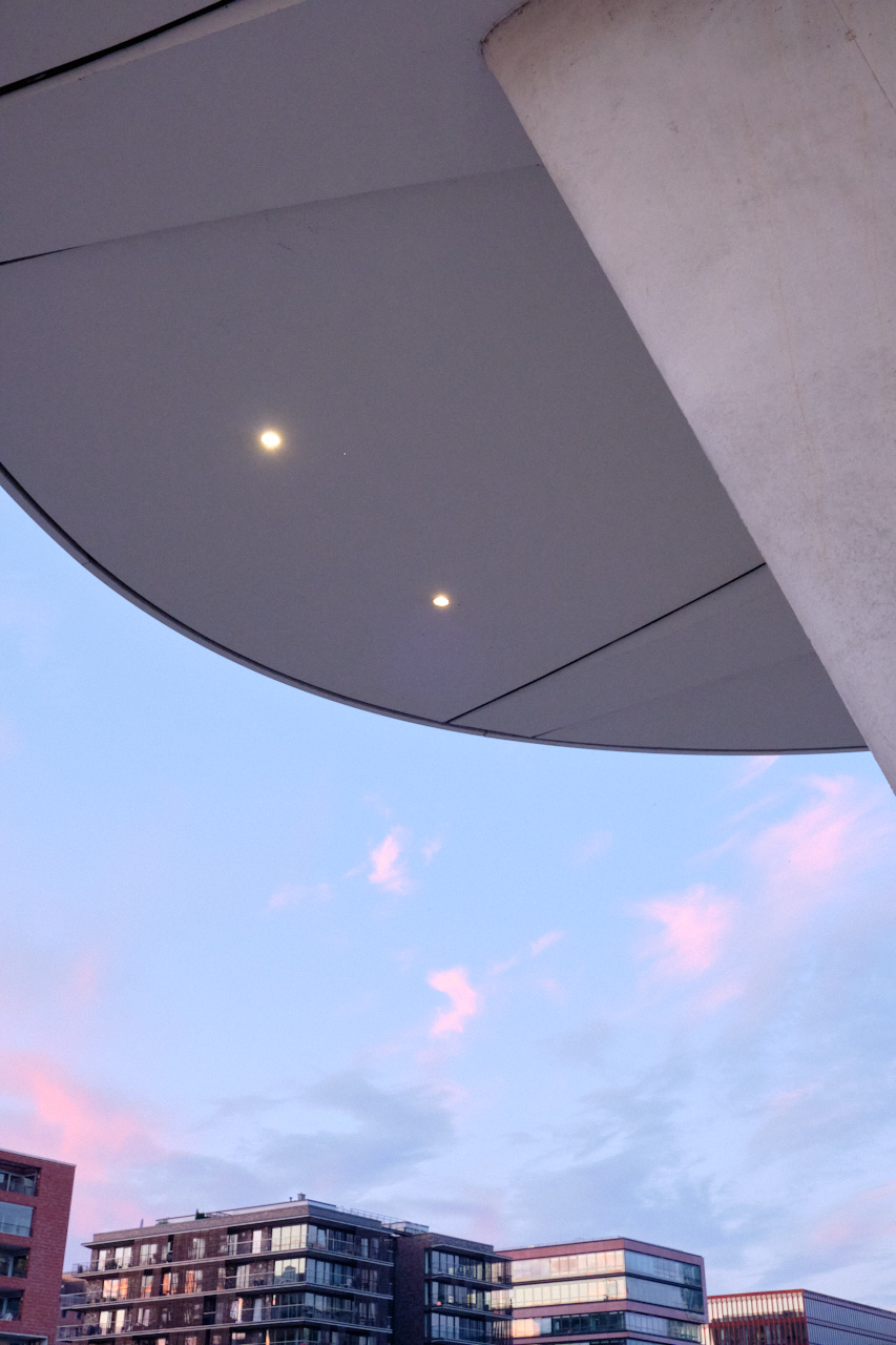 Nachdem es am Tage geregnet hatte und fast der geplanten Wandertag geplatzt wäre, wurde der Abend rosig und schön. In solchen Momenten fühlt sich alles richtig an und ich mag die Stadt wieder. Sogar dem neuen 'motel one', dessen Eröffnung wir mit Schaudern entgegen sahen, habe ich ein Bild abgerungen. Wenn es nicht in unmittelbarer Nachbarschaft wäre oder ich selbst Tourist, wäre ich vielleicht ganz angetan... In der Hafencity lande ich fast immer bei dem selben Haus, wenn ich fotografiere. Merkwürdig, es wird dort so viel gebaut und das Viertel wächst rasend schnell. Die ehmaligen ersten Reihen haben nun keinen weiten Ausblick mehr.